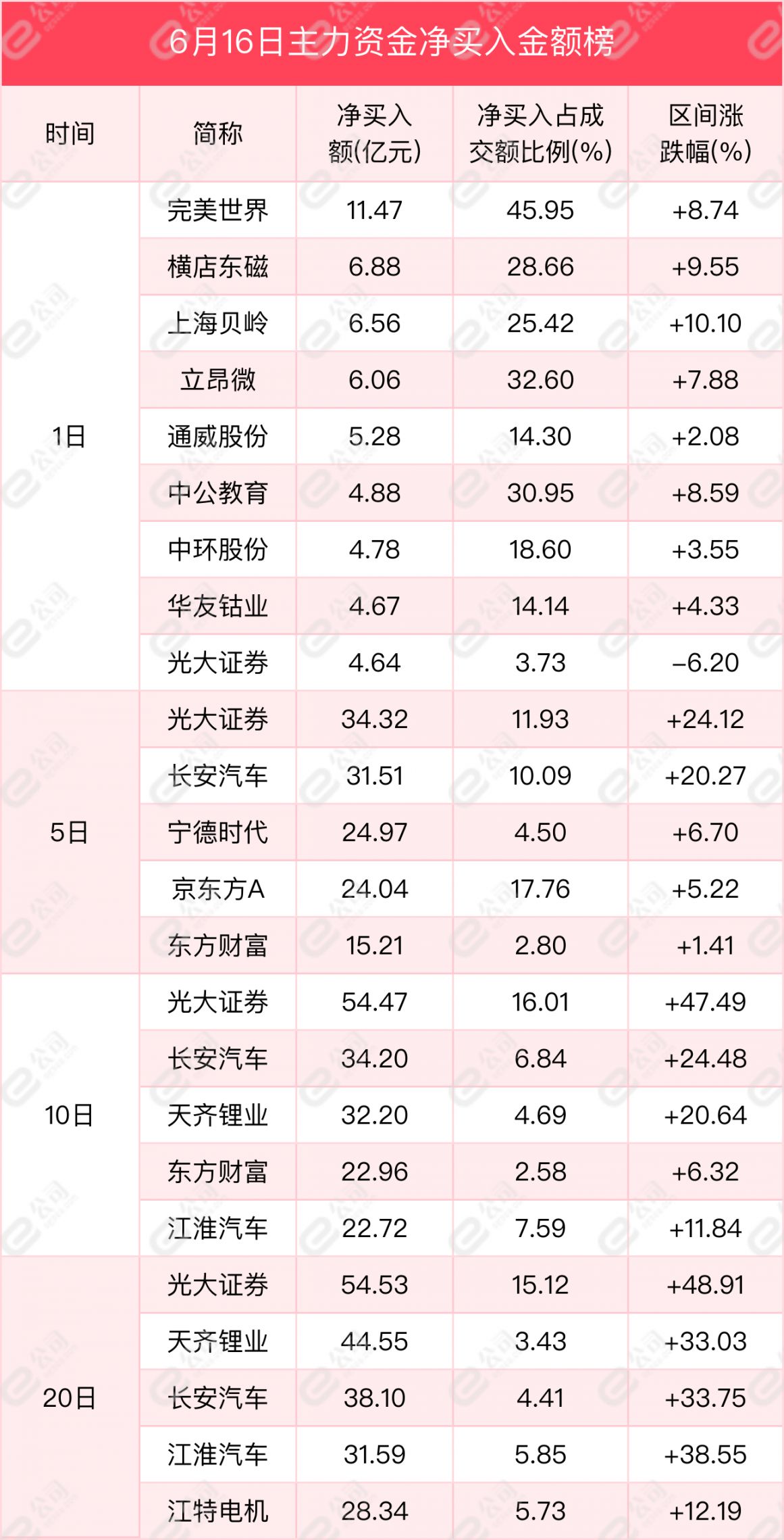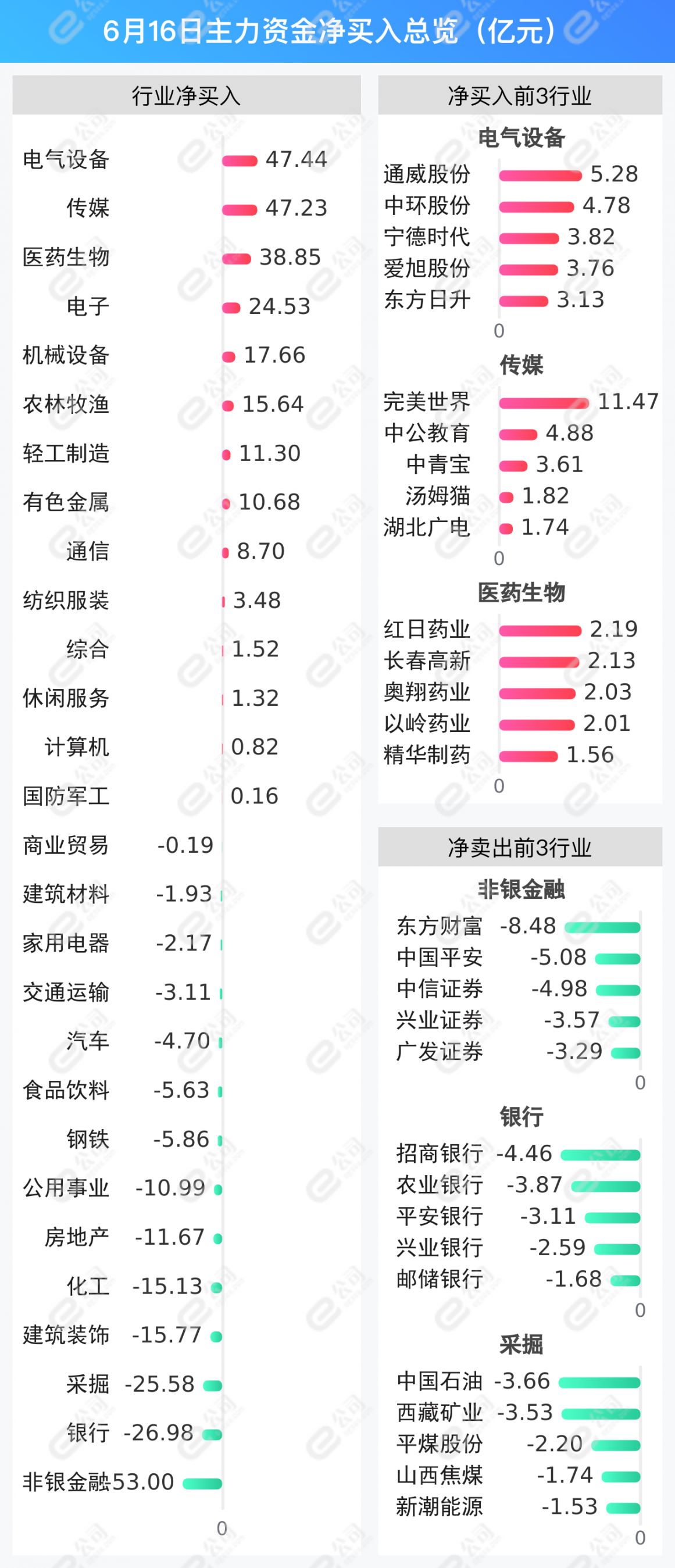e公司数据统计显示,6月16日沪深两市主力资金净流入46.4亿元。