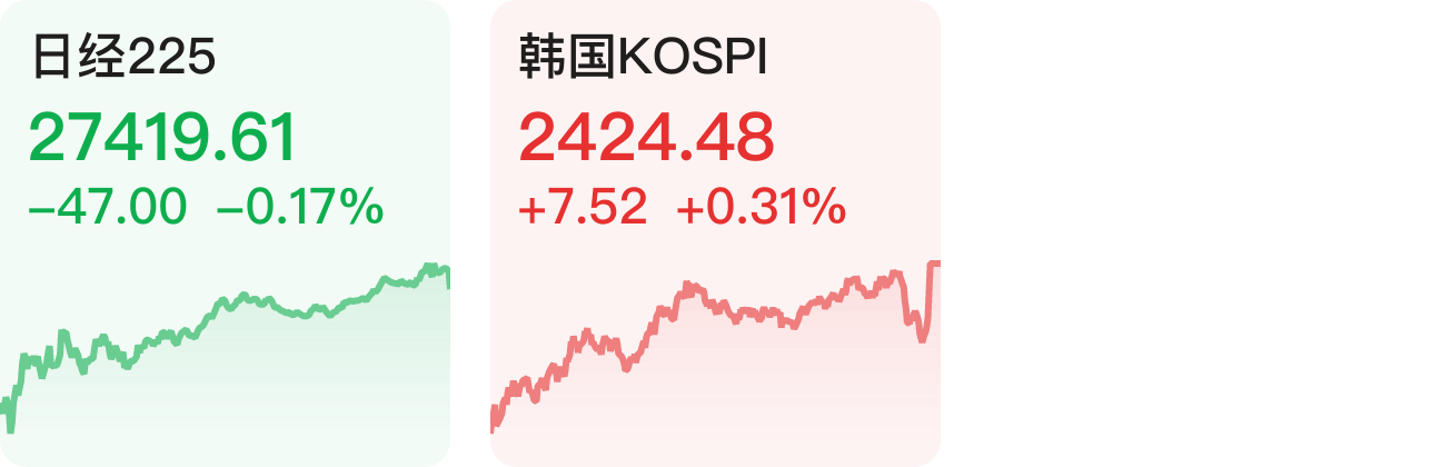 日经225指数跌0.17%,韩国KOSPI指数涨0.31%。