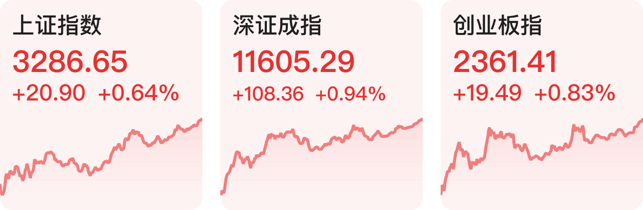 今日三大指数午后震荡上行,集体收涨。截至收盘,沪指涨0.64%,深证成指涨0.94%,创业板指涨0.83%。盘面上,芯片股大爆发,芯原股份-U、景嘉微20%涨停,佰维存储盘中触及涨停,兆易创新、浪潮信息等多股涨停。另外,软件服务板块午后走强,同花顺涨超18%,金山办公等多股涨超10%,科大讯飞涨停;建筑、保险、证券等行业板块涨幅居前;酒店餐饮、传媒娱乐、家居用品等板块走弱。