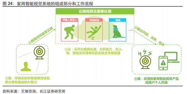 智能家居行业的发展历程可划分为四个阶段:以独立产品为中心的智能家居单品阶段,具备初步互联互通功能的智能互联阶段,全屋智能系统阶段,以及以人为中心的个性化智能服务阶段。进入以人为中心的个性化智能服务阶段,音视频&图片或为最重要的数据种类之一。具体到家用场景看,智能视觉系统不仅包括终端,还包括背后的物联网云平台。