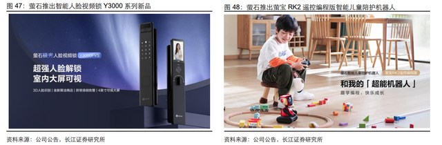 萤石的市场地位一方面是来自于其技术与研发实力支撑起的优秀产品性能,萤石以视觉交互为特色,以云平台的中台能力作为基础,建立了完整的智能家居行业技术体系,涵盖了云平台构建技术、视音频AI算法技术、产品智能化技术三大领域。公司同时投入软硬件研发,研发强度高于可比公司。综合硬件与算法层面看,萤石技术与研发实力雄厚,产品性能在行业内较为领先。长期来看,萤石有望凭借视觉领域的长期积累和坚实的产品研发能力在智能门锁与服务机器人领域推陈出新,延续增长。