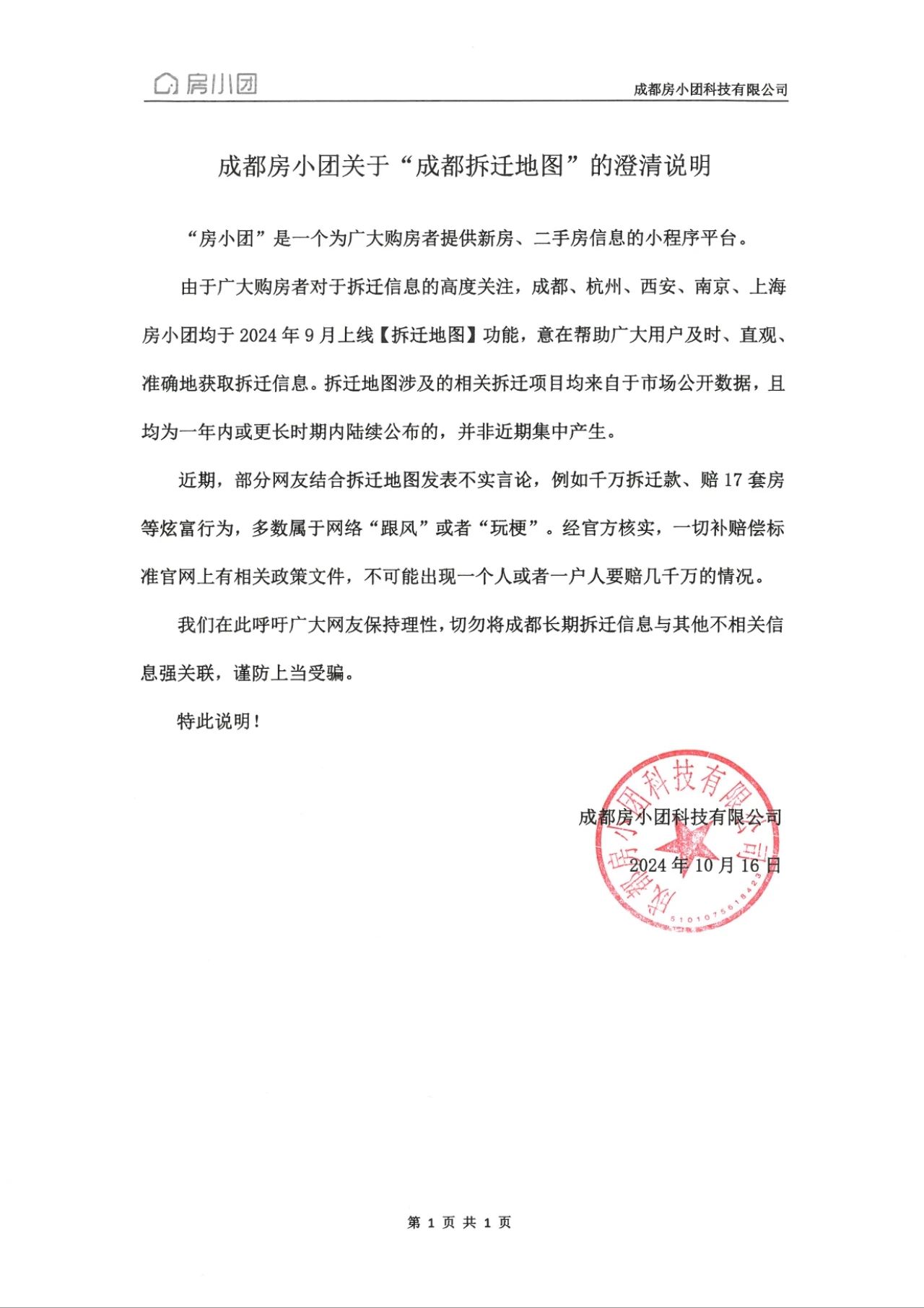 e公司讯,成都房小团就“成都拆迁地图”发布澄清说明:拆迁地图涉及的相关拆迁项目均来自于市场公开数据,且均为一年内或更长时期内陆续公布的,并非近期集中产生。近期,部分网友结合拆迁地图发表不实言论,例如千万拆迁款、赔17套房等炫富行为,多数属于网络“跟风”或者“玩梗”。经官方核实,一切补赔偿标准官网上有相关政策文件,不可能出现一个人或者一户人要赔几千万的情况。