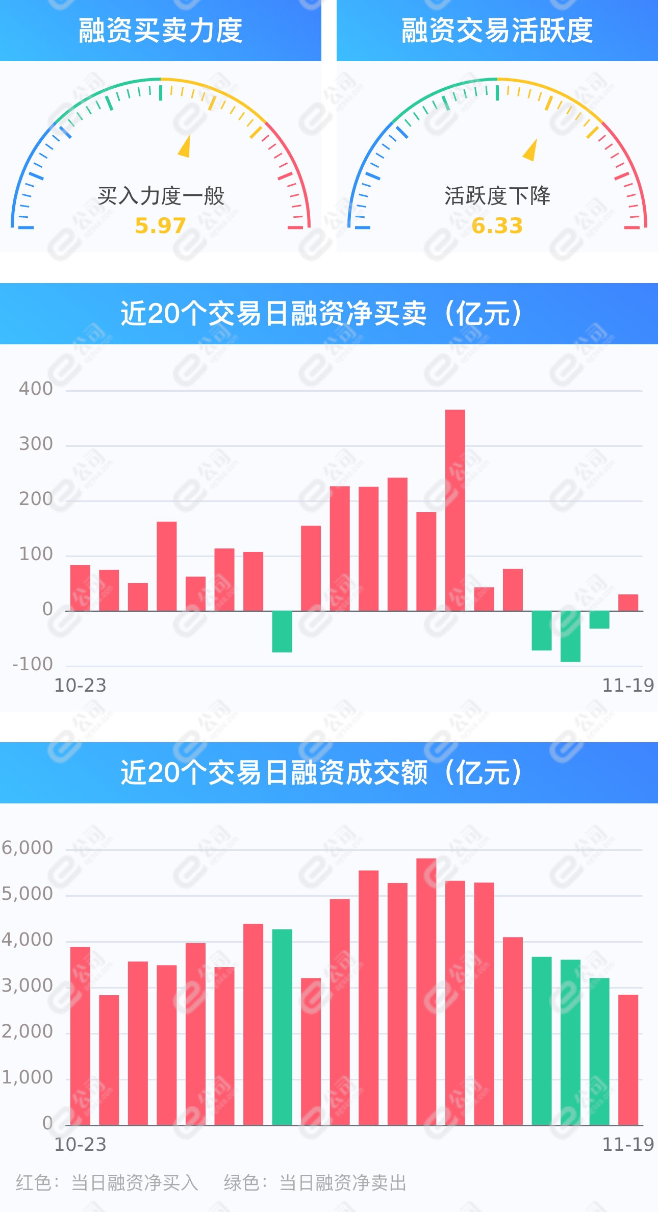 e公司讯,截至11月19日,上交所融资余额报9436.41亿元,较前一交易日增加17.10亿元;深交所融资余额报8785.49亿元,较前一交易日增加12.38亿元;两市合计18221.91亿元,较前一交易日增加29.48亿元,融资交易额2832.57亿元,占A股成交额18.18%,其中融资买入额1431.02亿元,融资偿还额1401.54亿元,交易活跃度下降11.44%。统计发现,融资客中止连续3日净卖出。