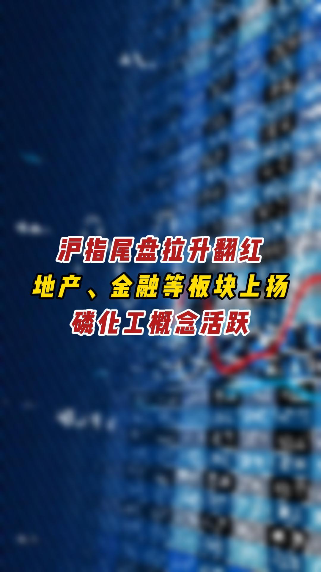 沪指尾盘拉升翻红,地产、金融等板块上扬,磷化工概念活跃
