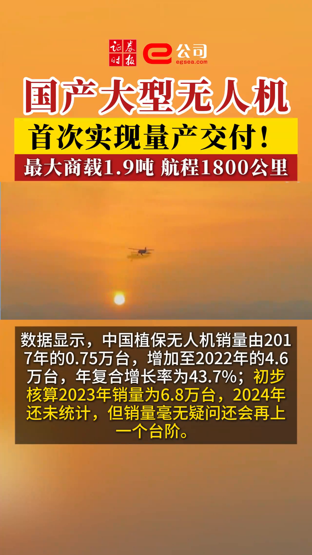 国产大型无人机首次实现量产交付!最大商载1.9吨 航程1800公里