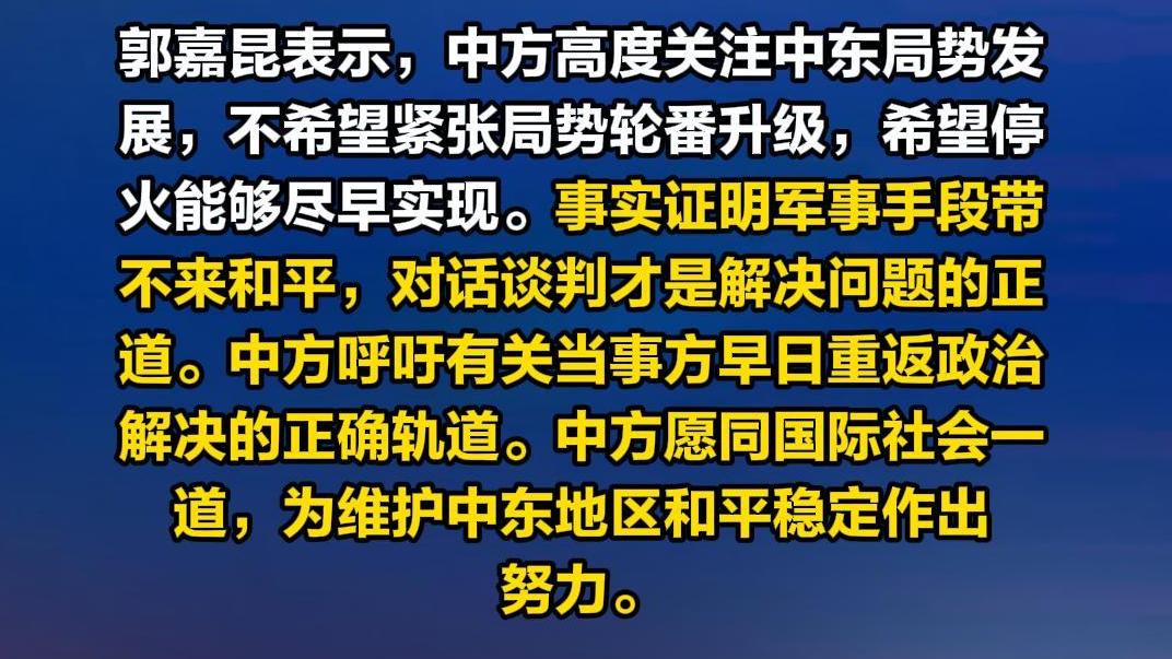 中方回应“以伊停火”:对话谈判才是解决问题的正道