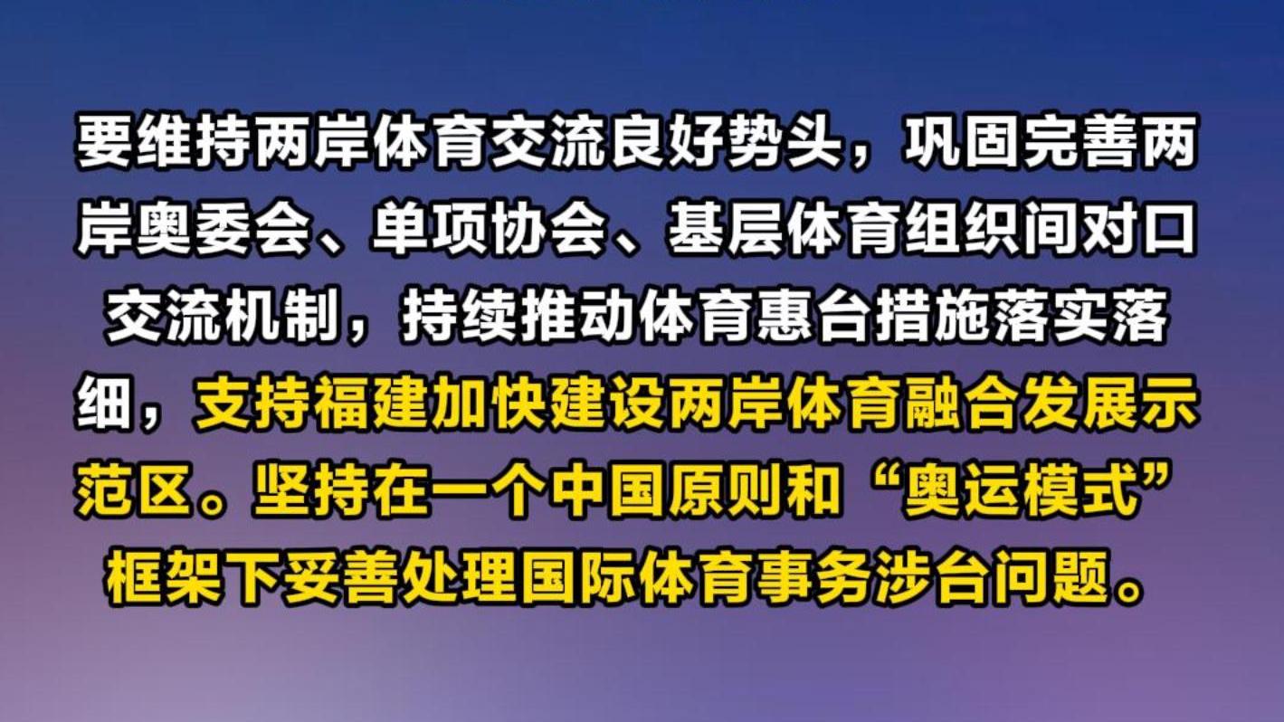 国家体育总局:支持福建加快建设两岸体育融合发展示范区