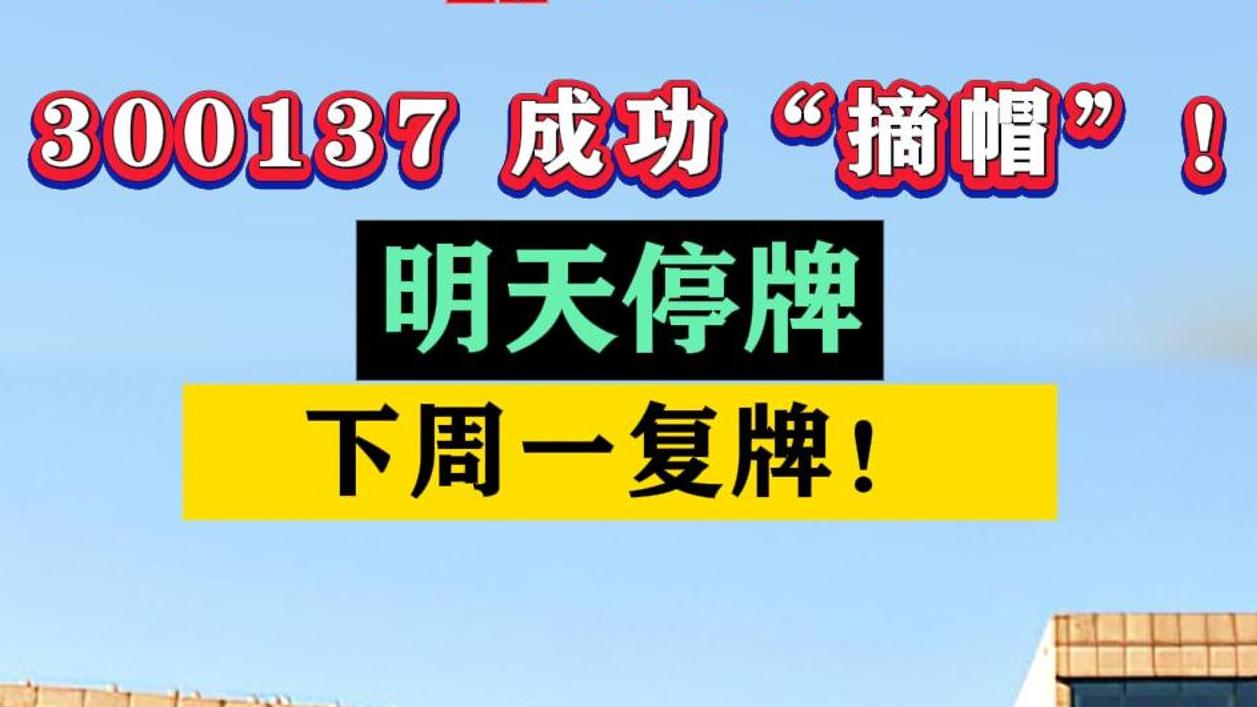 300137 成功“摘帽”!明天停牌,下周一复牌!#a股