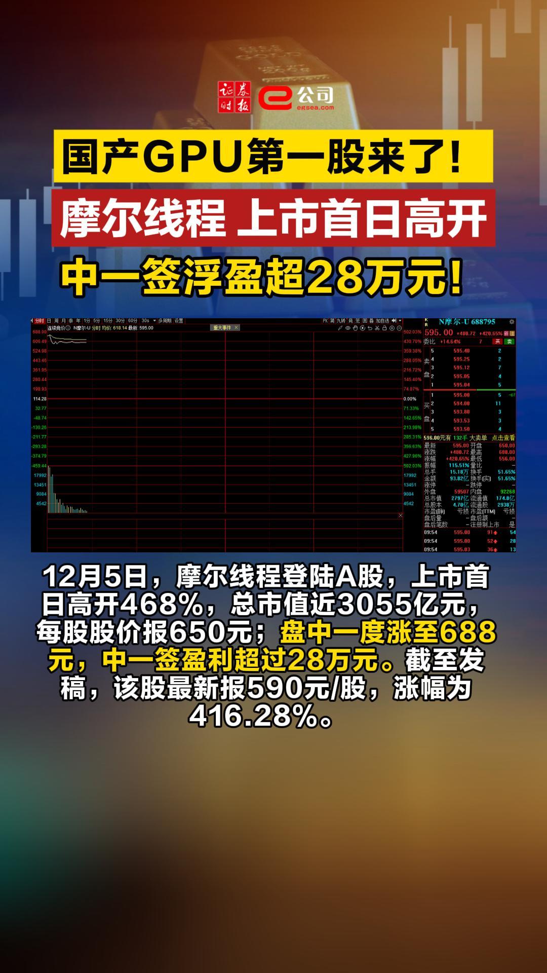 国产GPU第一股来了!摩尔线程 上市首日高开,中一签浮盈或超28万元!