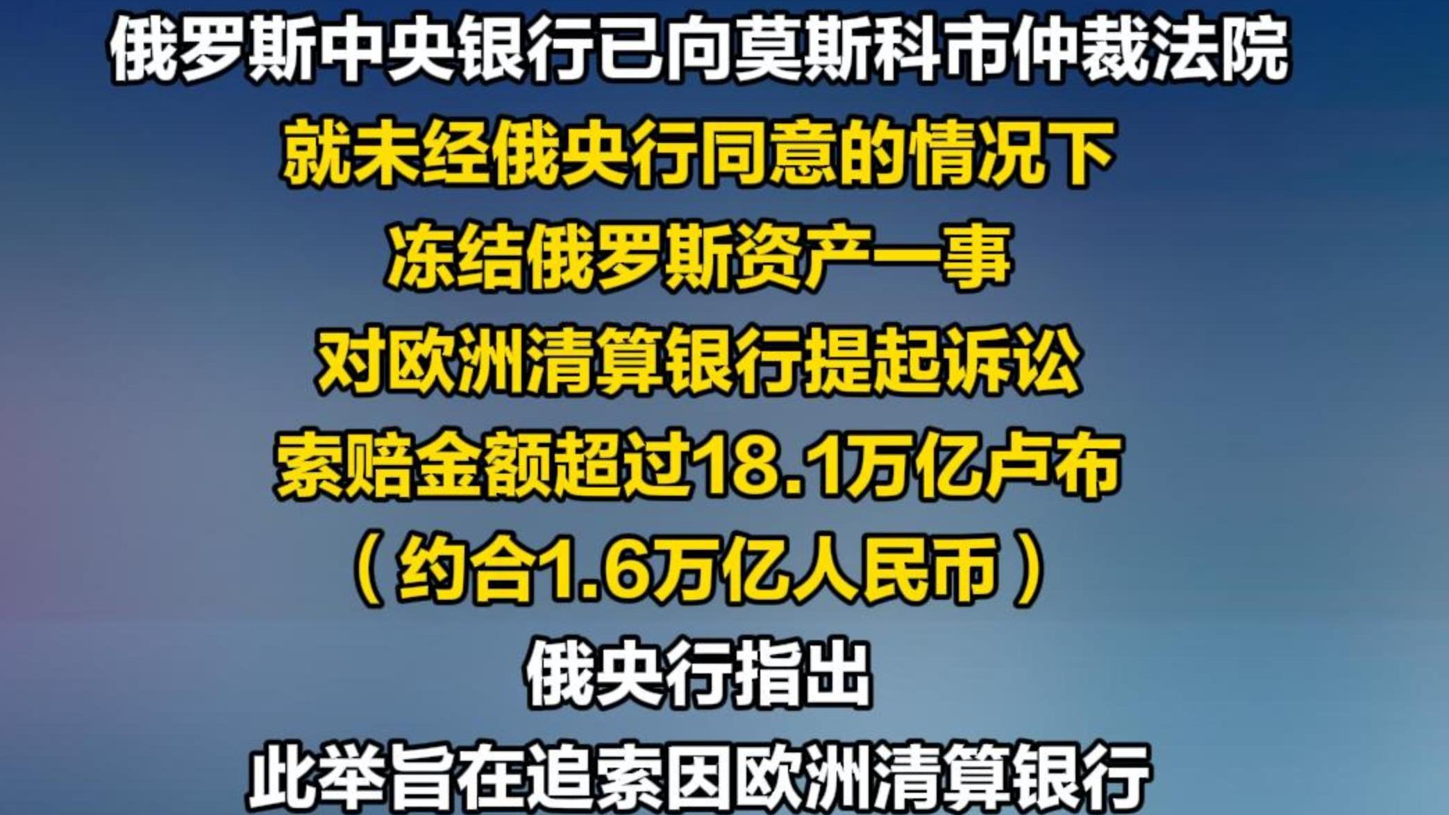 索赔逾18万亿卢布 俄罗斯央行对欧洲清算银行提起诉讼