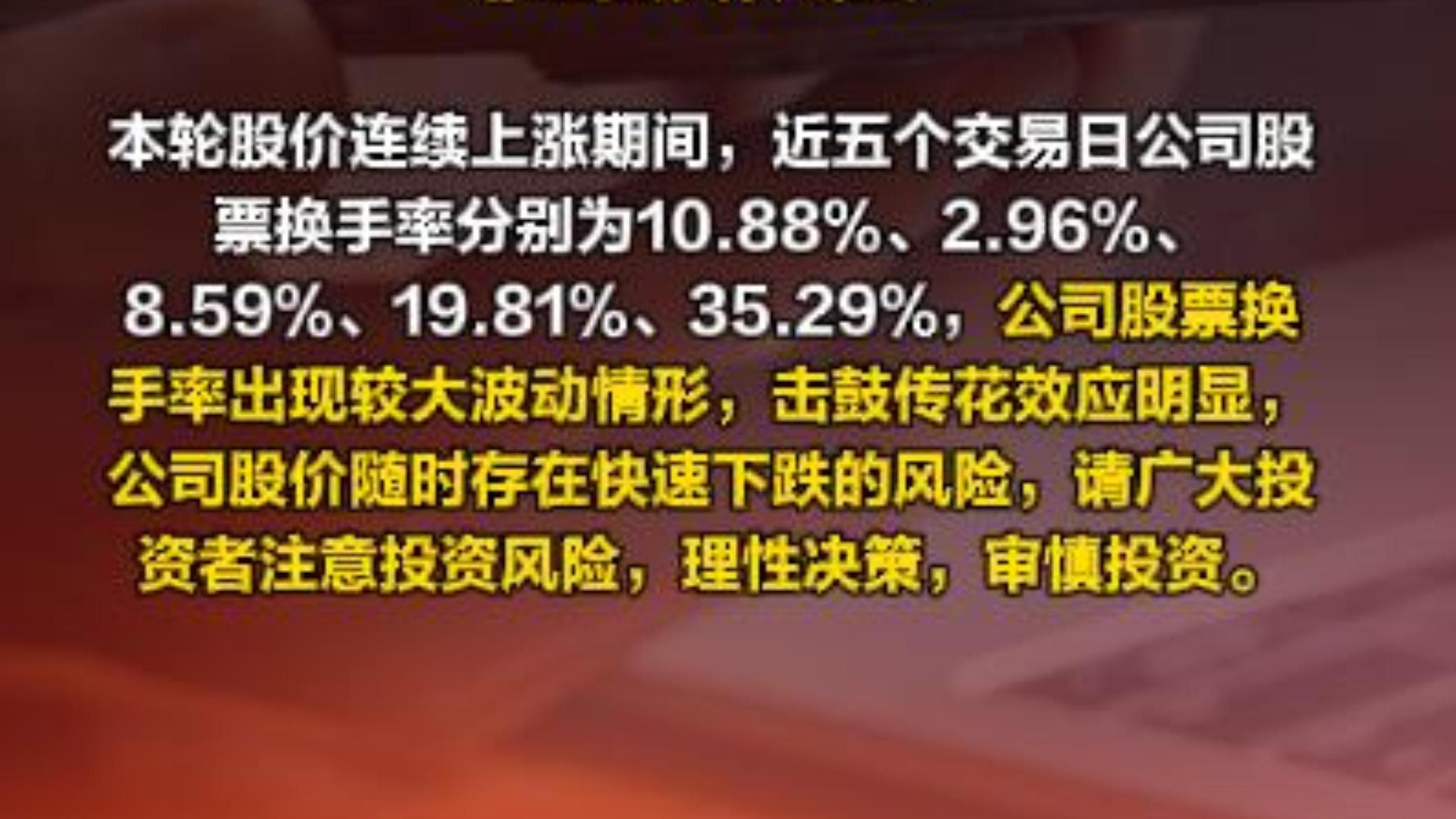 6连板再升科技:公司股票换手率近期波动较大 击鼓传花效应明显