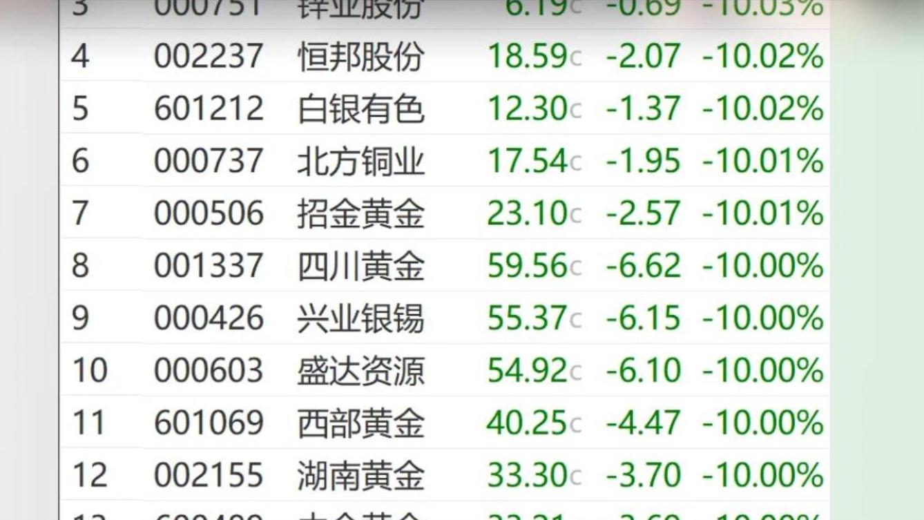 有色金属板块大跌,开盘逾30股跌停,黄金、白银短暂反弹后继续跳水