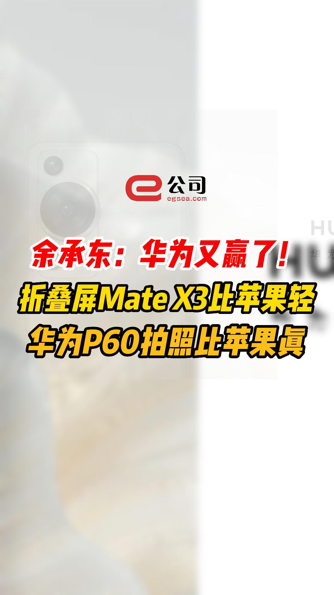 余承东:华为又赢了!折叠屏Mate X3比苹果轻,华为P60拍照比苹果真