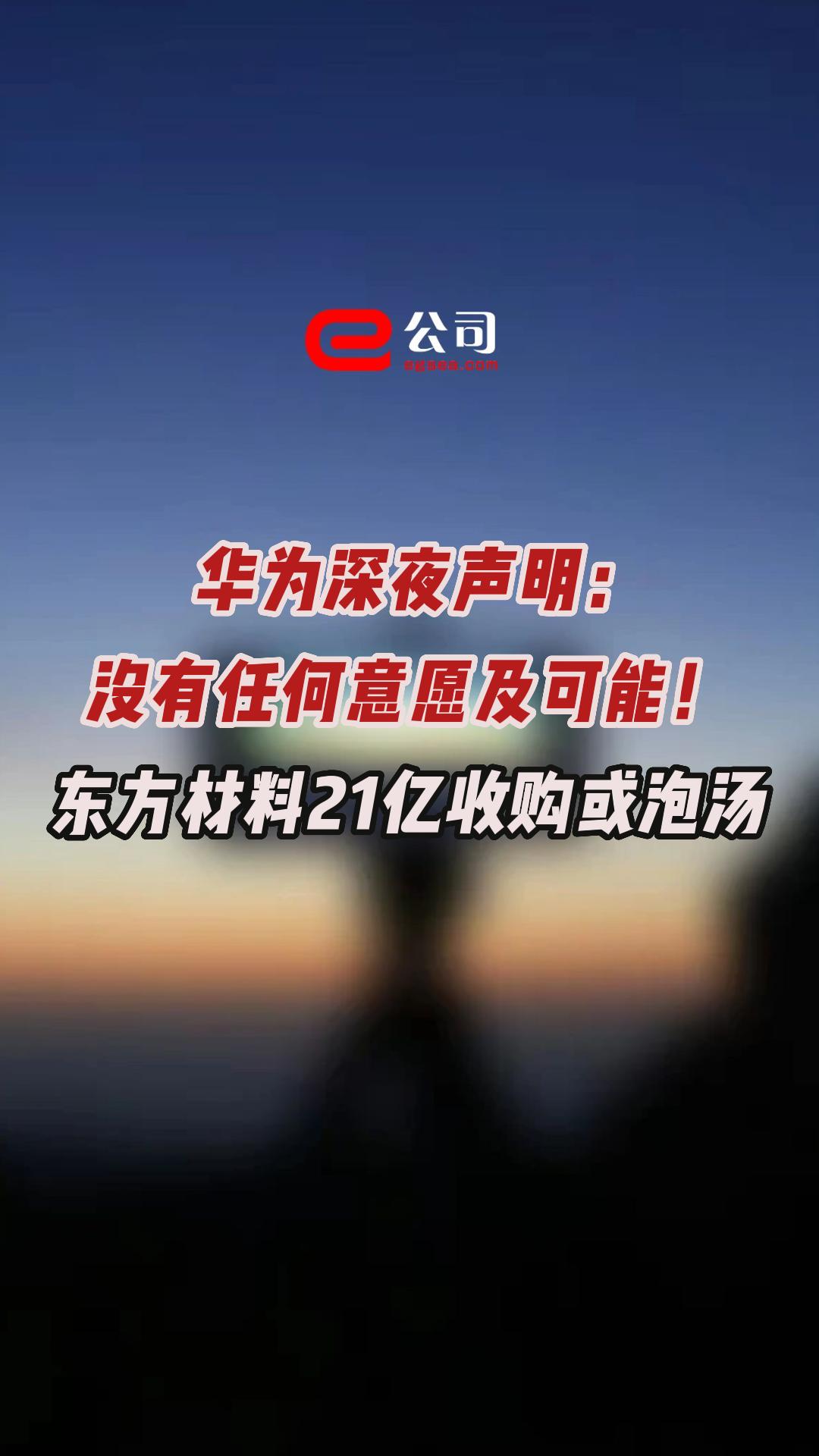 华为深夜声明:没有任何意愿及可能!东方材料21亿收购或泡汤...