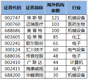 e公司讯,统计显示,近10个交易日(10月20日至11月2日),海外机构对201家上市公司进行调研。海外机构调研榜单中,埃斯顿参与调研的海外机构达到121家,最受关注;其次是迈瑞医疗,参与调研的海外机构共有103家。