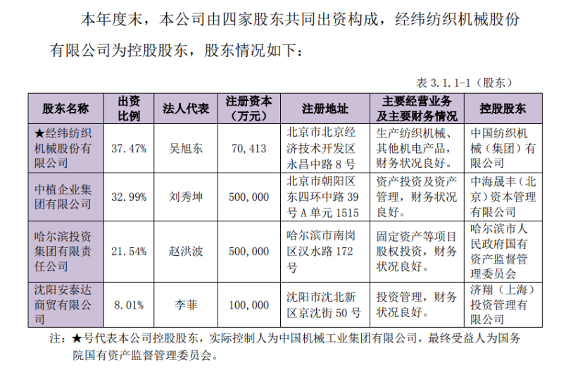 中融信托年报显示,公司由4家股东共同出资构成,其中经纬纺织机械股份有限公司为控股股东(持股比例37.47%),中植企业集团有限公司为第二大股东(持股比例32.99%)。包括公司董事长刘洋,及公司副董事长姚育明和张向晖等董事会要员均为控股股东经纬纺机推举。