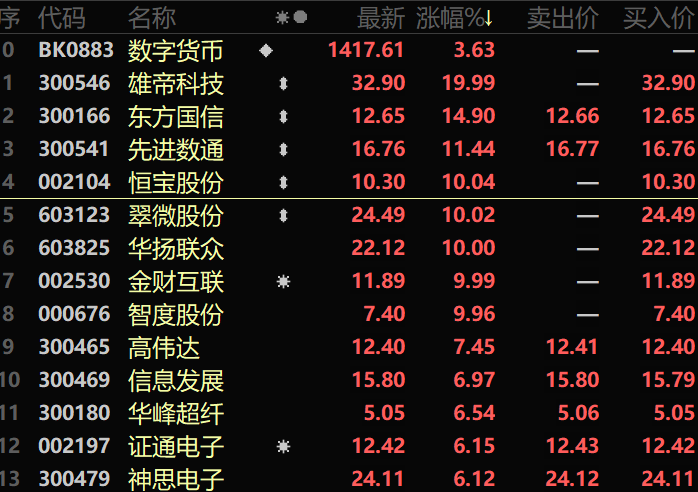 数字货币迎利好,板块个股大涨。