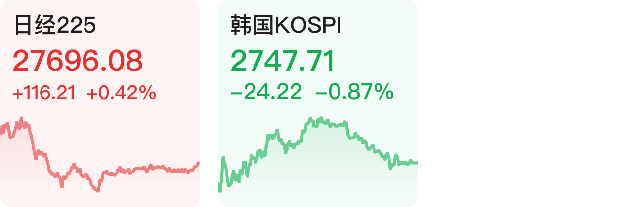 日经225指数涨0.42%,韩国KOSPI指数跌0.87%。