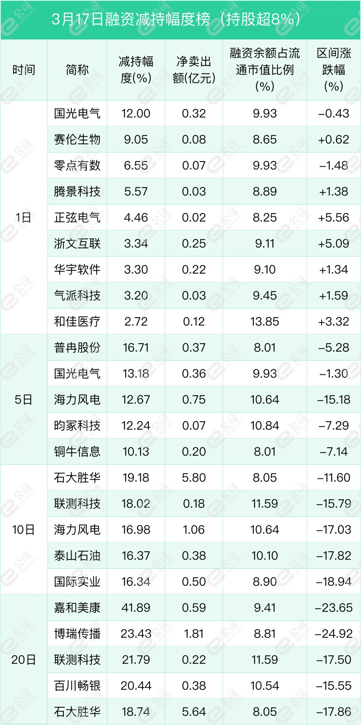 国光电气、赛伦生物、零点有数遭融资减持幅度居前,分别为12%、9.05%、6.55%。