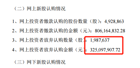值得关注是,中一科技网上中签投资者合计弃购198.7万股,合计弃购金额3.25亿元,以每一签500股计算,合计有近4000名中签投资者放弃认缴。中一科技中签号有1.38万个,也就是说中签缴款股民有近万人,合计缴款金额8.06亿元。以午间收盘价计算,中签股民合计亏损1.89亿元。