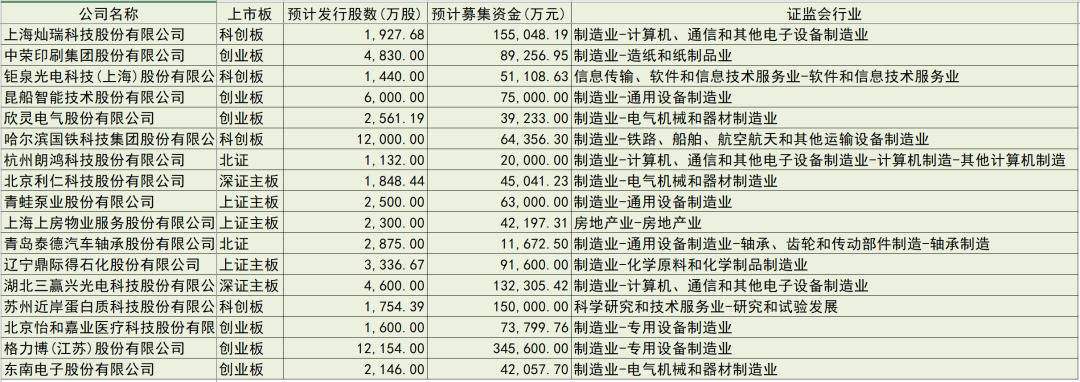 本周科创板共4家公司上会,其中两家募资金额超15亿元,分别是灿瑞科技(募资15.5亿元)和近岸蛋白(募资15亿元)。