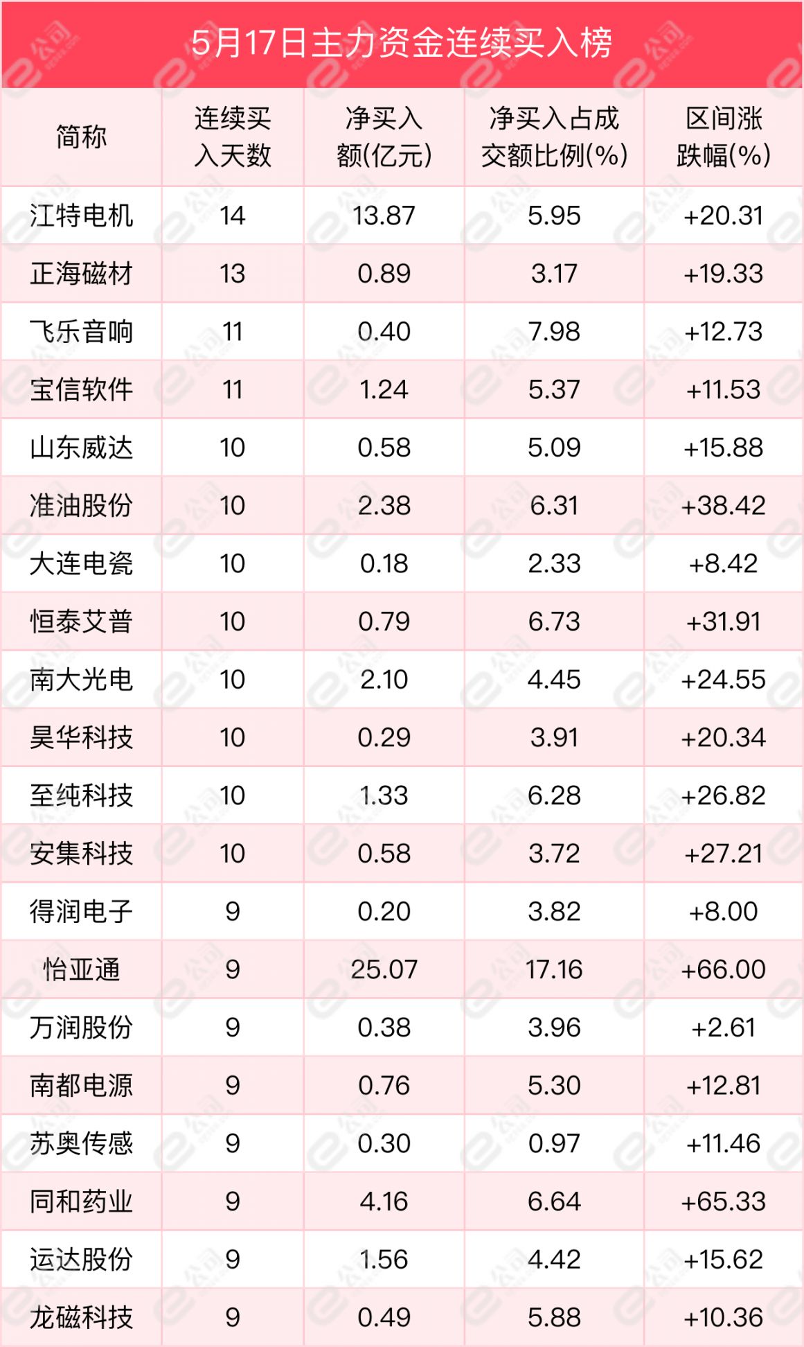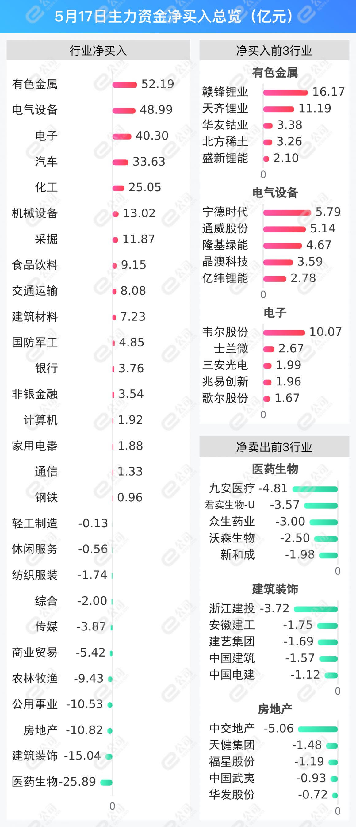 e公司数据统计显示,5月17日沪深两市主力资金净流入181.5亿元。