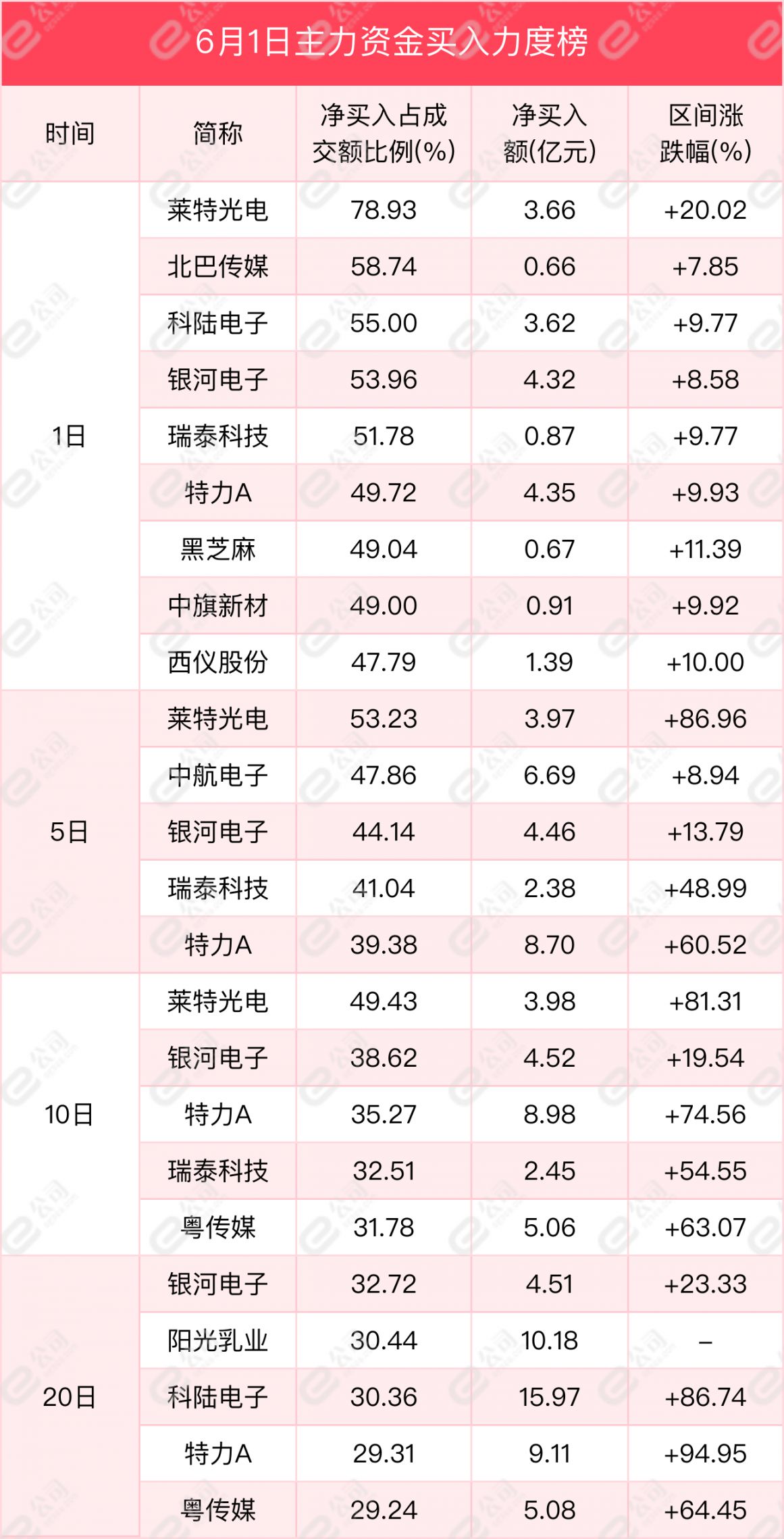 从主力资金买卖力度来看,莱特光电、北巴传媒、科陆电子获主力资金大力买入,净买入额占当日成交额比例分别为78.93%、58.74%、55%,净买入额分别为3.66亿元、0.66亿元、3.62亿元。