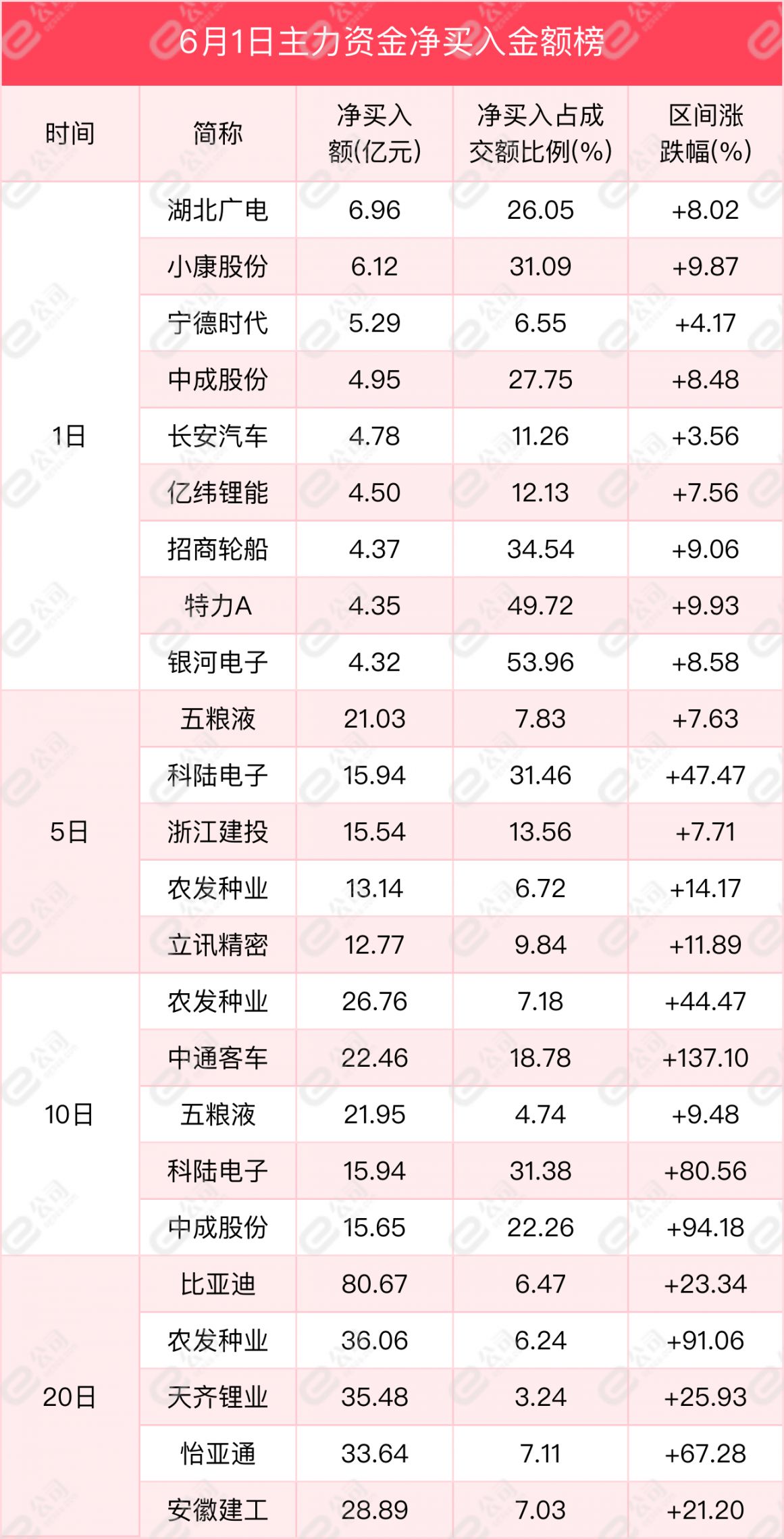 e公司数据统计显示,6月1日沪深两市主力资金净流入65.1亿元。