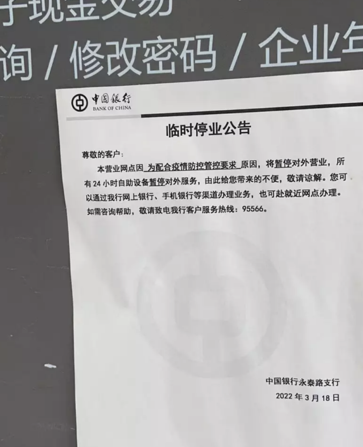 不过,记者走访浦东新区三林地区时发现,当天包括多家国有行、股份行等在内的机构网点尚未恢复营业。银行工作人员向记者表示,因受疫情影响,所在街道的营业所还没有接到营业通知,预计6月6日左右会恢复正常营业。