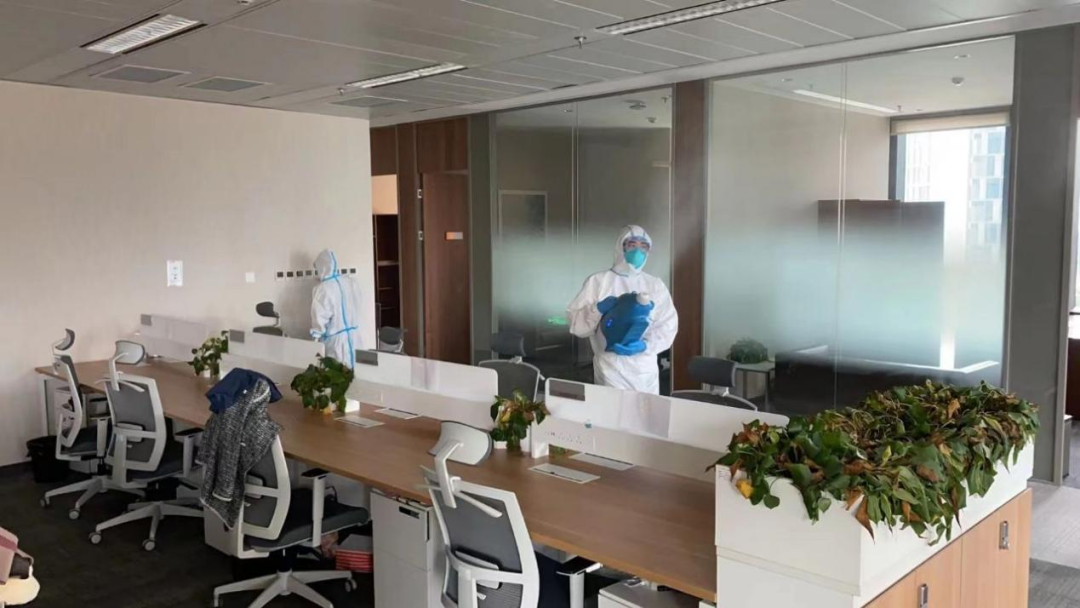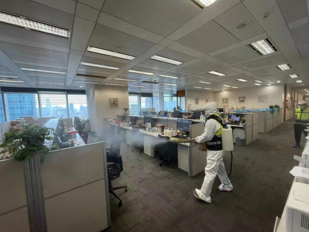 (图为汇丰晋信基金复工前夕对办公场所进行消杀。)