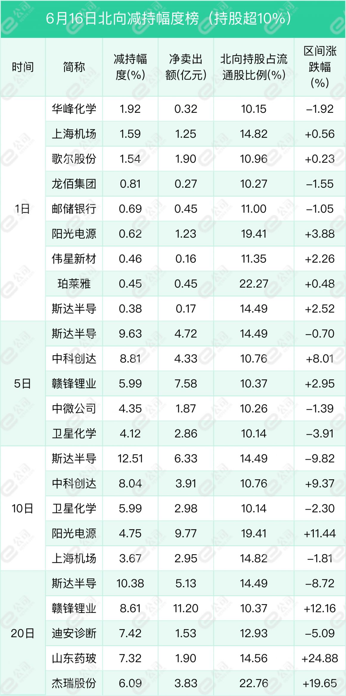 华峰化学、上海机场、歌尔股份遭北向资金减持幅度居前,分别为1.92%、1.59%、1.54%。