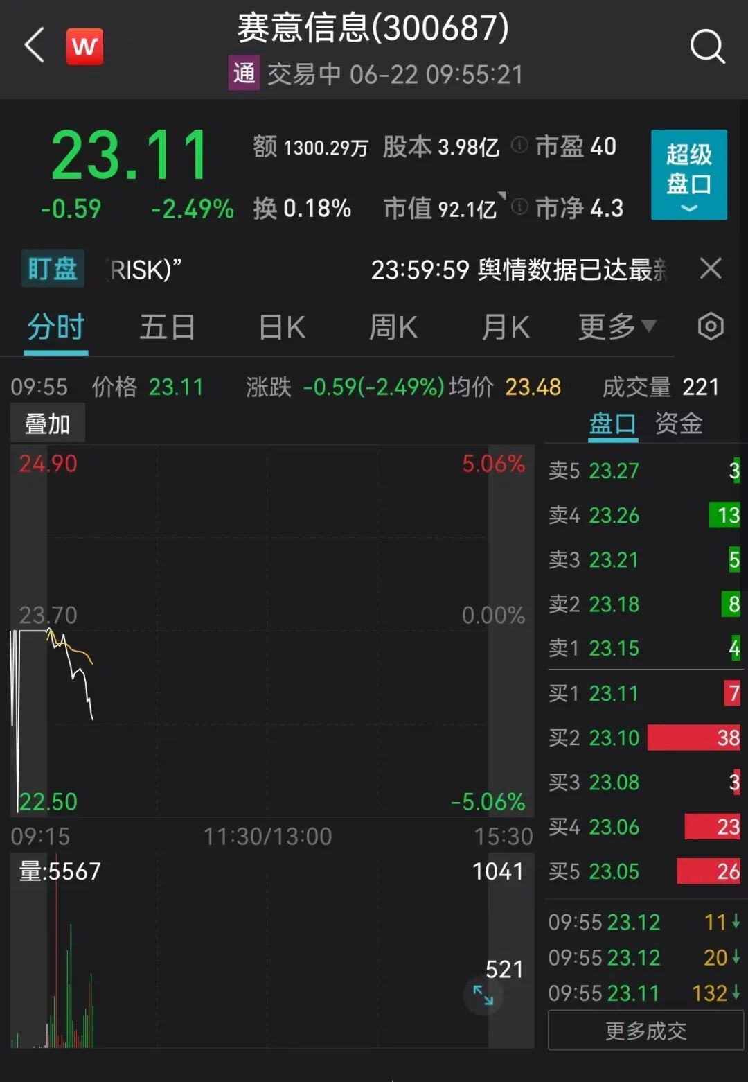 或许是受到清仓式捐赠影响,6月22日开盘,赛意信息股价下跌。