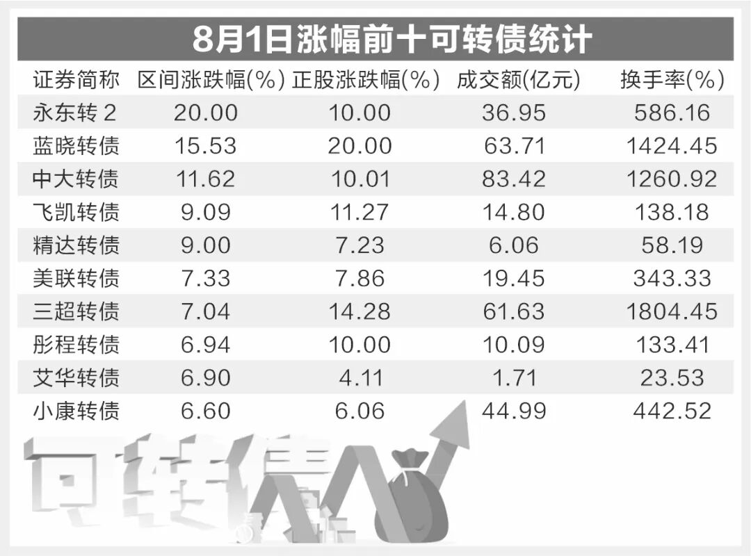 据Wind数据统计,8月1日全市场共有106只可转债涨幅超过1%,相比于400多只的市场存量,占比仅四分之一。同时还有176只可转债下跌,其中模塑转债、溢利转债、城市转债3只个券领跌,跌幅均超过3.5%,且同为转股溢价率和纯债溢价率均超过100%的“双高”个券。