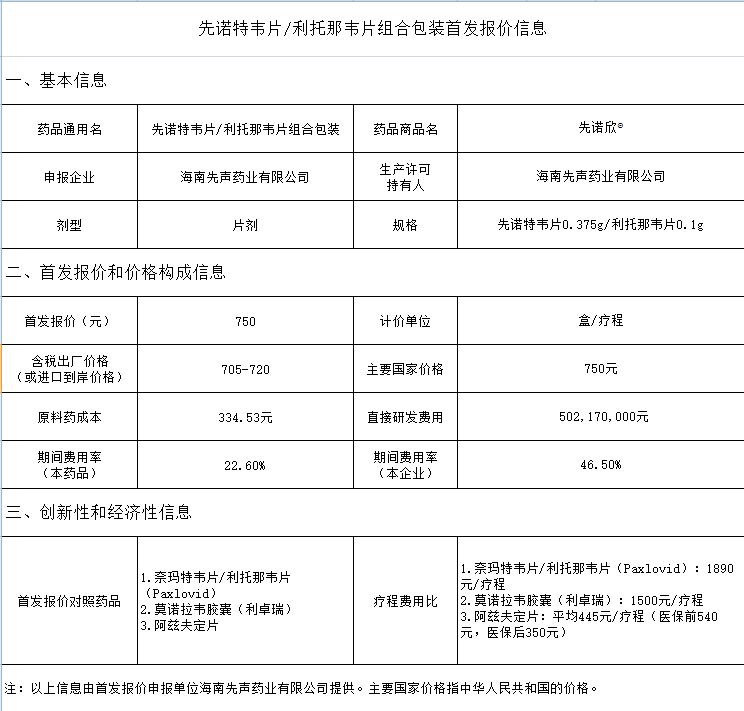 北京市医保局公示新冠治疗药品先诺特韦片/利托那韦片组合包装首发报价:750元/盒