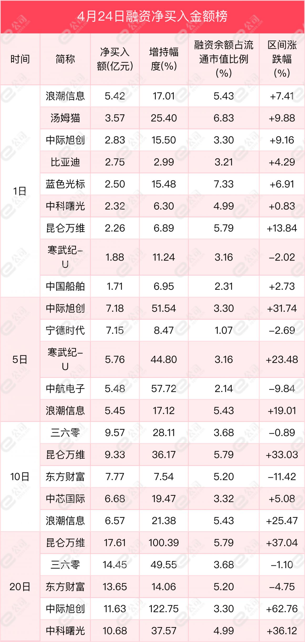 从买卖金额来看,浪潮信息、汤姆猫、中际旭创获融资净买入金额居前,分别为5.42亿元、3.57亿元、2.83亿元,增持幅度分别为17.01%、25.4%、15.5%。