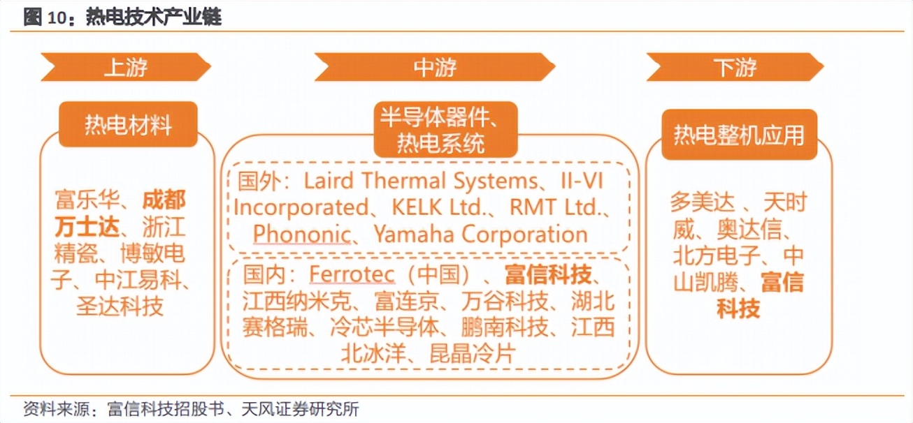公司主营半导体热电器件、热电系统、热电整机应用的研发、制造和销售,已研制用于光模块温控的高性能微型热电制冷器件,并向客户小批量供货。公司上中下游全产业链布局构成核心优势。上游方面,子公司成都万士达保障陶瓷基板。中游方面,微型热电制冷器件、单极热电制冷器件水平与Ferrotec(中国)等国际知名企业处同一区间。下游方面,实现了半导体热电技术在消费电子领域的大规模产业化应用,与国内外知名品牌建立了良好合作关系,营收逐年增长。公司经营稳健,23年一季度环比回暖,随着疫情影响减弱,终端需求有望复苏,公司未来营收增长可期。