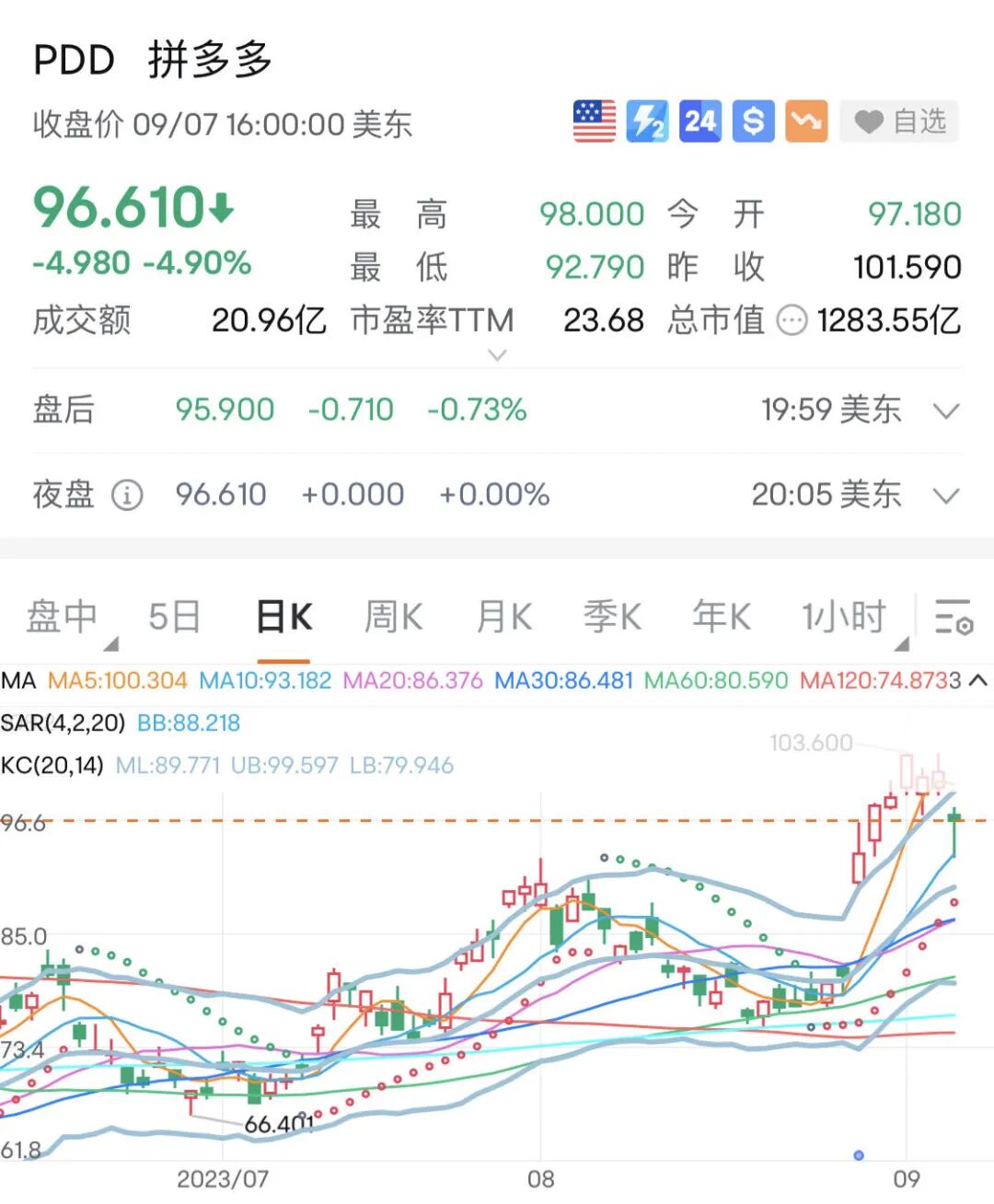 日前拿出亮丽财报的拼多多,股价也遭遇下杀。盘中一度跌超8%,创3月以来最大盘中跌幅。收盘则下跌4.9%。消息面上,拼多多遭机构唱空,灰熊研究公司发布了一份简短的报告。