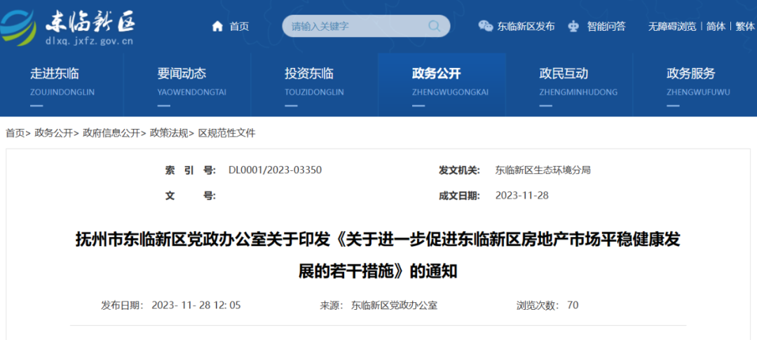 11月28日,抚州市东临新区印发《关于进一步促进东临新区房地产市场平稳健康发展的若干措施》,从五方面提出19条措施。