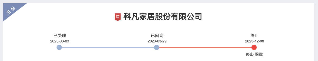 12月8日深交所公告,11月30日,科凡家居股份有限公司(简称“科凡家居”)申请撤回发行上市申请文件。根据规定,深交所决定终止对其首次公开发行股票并在主板上市的审核。