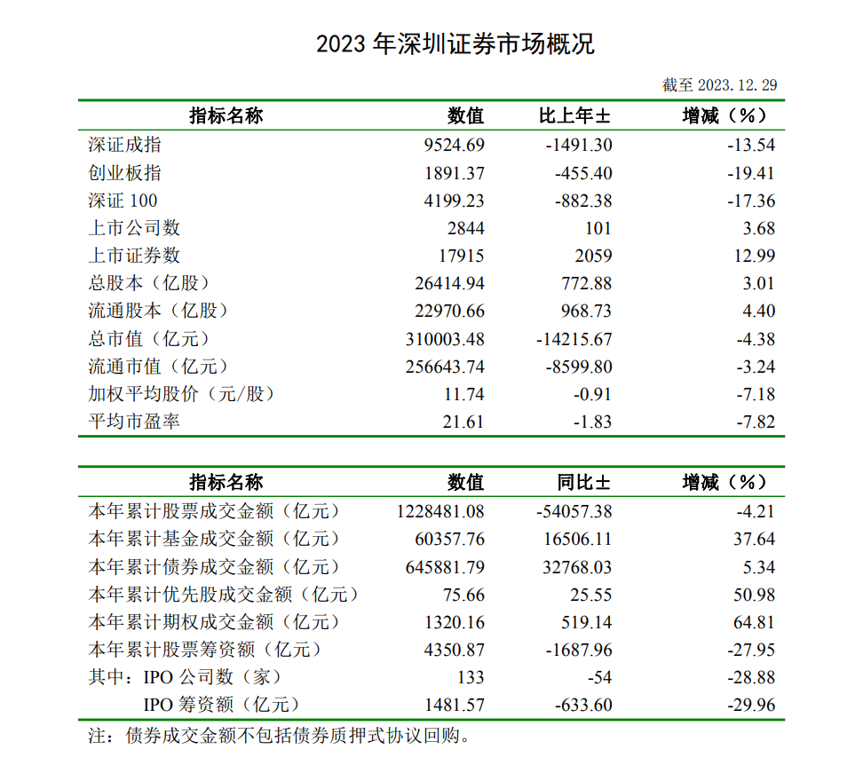 e公司讯,深交所发布2023年深圳证券市场概况。