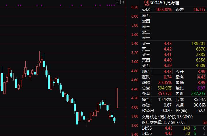 人工智能今日全线走强,其中多模态AI概念领涨,板块指数放量高开高走涨2.61%。汤姆猫、泓博医药20%涨停,声迅股份则高开后秒停,连续第2日封板。