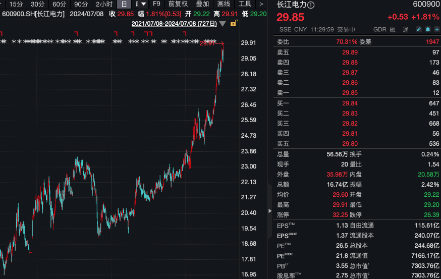 中国广核盘中一度涨5%,股价创历史新高(复权,下同),长江电力、华能水电等亦创历史新高,中国核电、浙能电力等则创近9年新高。