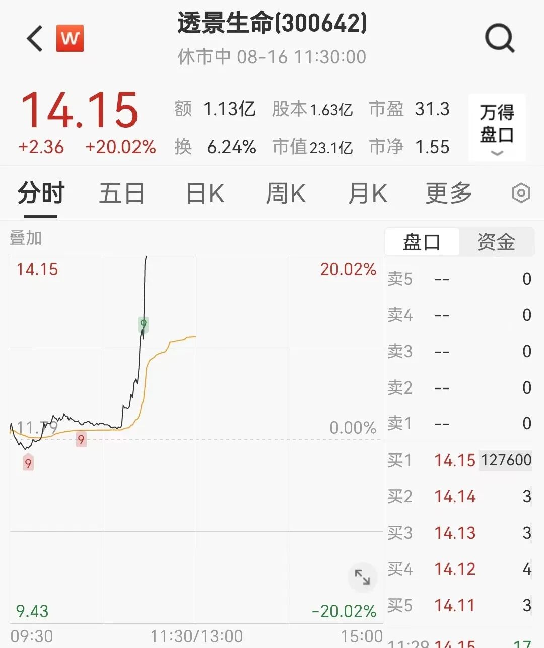 8月16日,生物医药板块早盘一度下跌。上午11时反转,体外诊断、基因检测、新冠抗原检测等概念板块明显拉升。合富中国开盘后一字涨停,透景生命盘中直线冲至20%涨停,海辰药业盘中再涨超17%,午间收盘涨14.37%。
