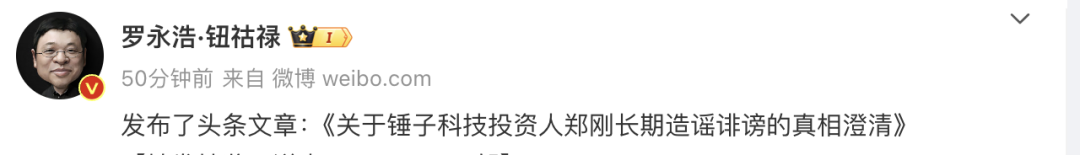 此外,对于紫辉创投创始人郑刚对其的炮轰,罗永浩也发文进行了回应。