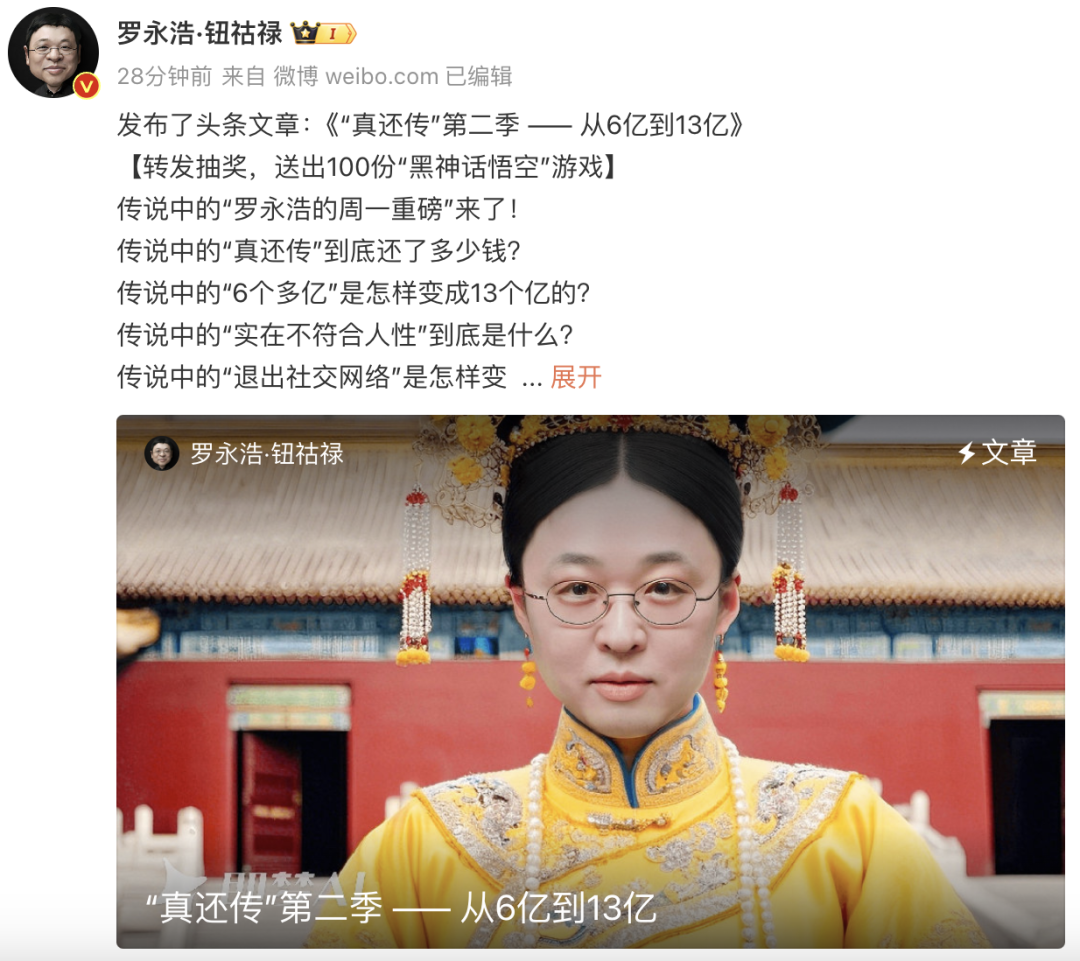 在文中,罗永浩表示,到目前为止,“真还传”一共还了8.24亿元。包括: