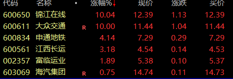 热点方面,公共交通概念在无人驾驶浪潮的推动下继续大涨,板块指数跳空高开高走,盘中一度飙升近8%。大众交通开盘一字涨停,创2015年11月以来近9年新高(复权),锦江在线亦开盘后秒速涨停,申通地铁、江西长运等涨幅居前。