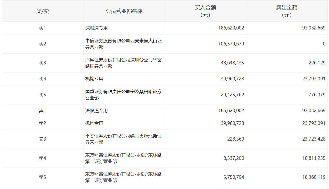 e公司讯,天齐锂业今日涨停,成交额16.71亿元,换手率4.24%,盘后龙虎榜数据显示,中信证券股份有限公司西安朱雀大街证券营业部净买入1.07亿元,深股通专用席位买入1.87亿元并卖出9303.27万元。