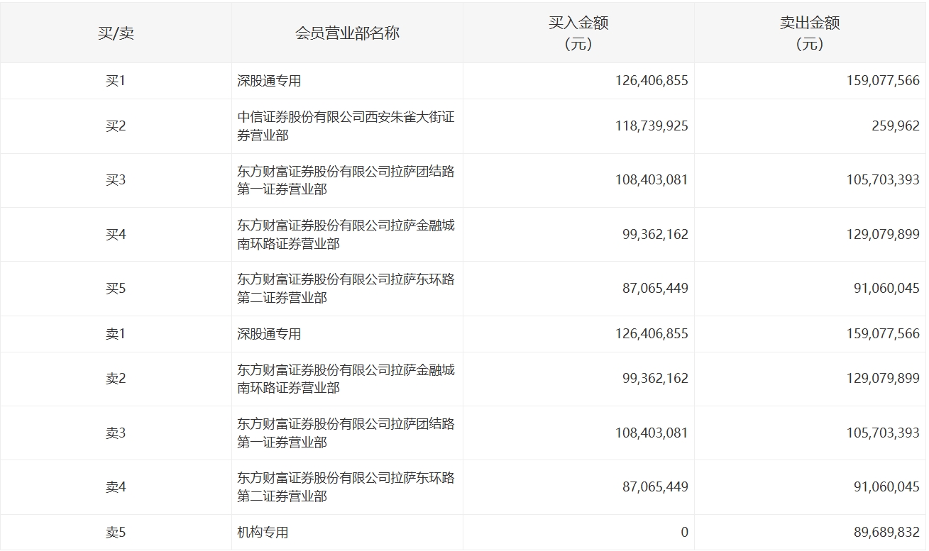 e公司讯,和而泰今日涨停,成交额90.01亿元,换手率49.48%,盘后龙虎榜数据显示,中信证券西安朱雀大街证券营业部净买入1.18亿元,深股通专用席位买入1.26亿元并卖出1.59亿元,一机构专用席位净卖出8968.98万元。