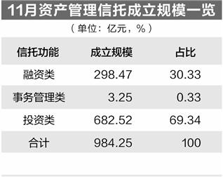 e公司讯,集合信托迎来发行高峰,基础产业类产品尤其火爆。据公开资料不完全统计,11月新成立资产管理信托产品环比增长23.83%,新成立规模环比上升109.72%。其中,基础产业类信托成立规模增长接近五成。业界观察人士称,上述情况主要受年末冲规模和资本市场行情火热等因素的影响,带动隐性债务置换。