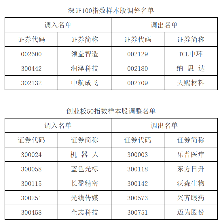 深交所:调整深证成指、创业板指、深证100等指数样本股